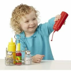 A must-have for the well-appointed play kitchen, these condiments from Melissa & Doug sound and look like the real thing.