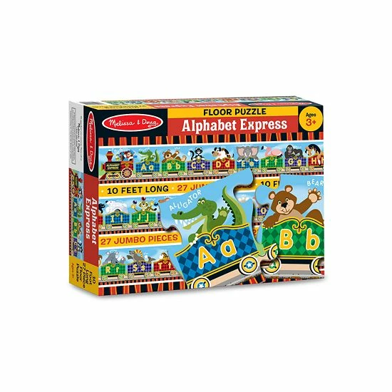Ride the rails to create a 10-foot long scene that includes 26 animals and letters with this Melissa & Doug Alphabet Express floor puzzle.