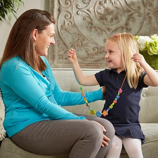 This Melissa & Doug Bead Bouquet set includes over 220 pretty wooden beads and eight multicolored cords to create necklaces, anklets or bracelets.