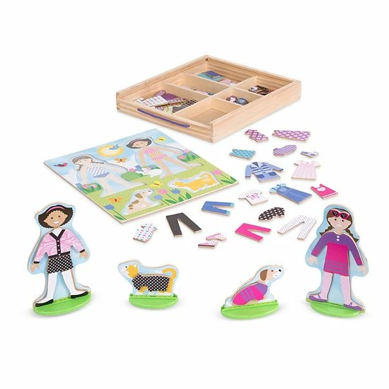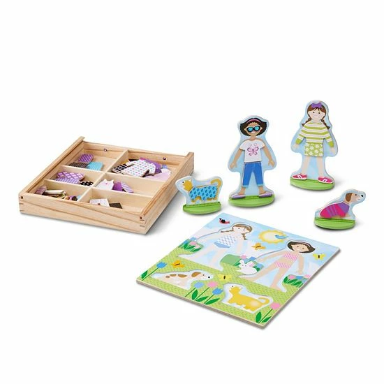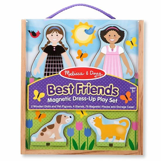 The trend setter in your family will love creating fashions with this Melissa & Doug Best Friends Magnetic Dress-Up Wooden Dolls Set.