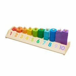 This sturdy wooden stacker from Melissa & Doug is jam-packed with exciting details that appeal to a child’s natural curiosity about colors, shapes and numbers.