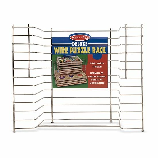 Keep your little one’s puzzles stowed neatly in one compact, convenient place with this wire puzzle rack by Melissa & Doug.