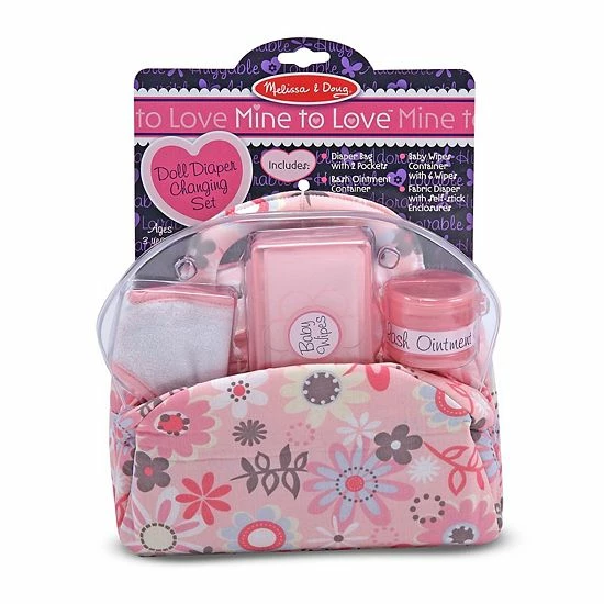This Melissa & Doug doll diaper changing set includes realistic pieces for interactive play with her favorite doll.