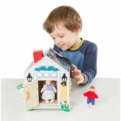 Ring in the fun with this Melissa & Doug Doorbell House playset that features four unique bell sounds and four numbered doors, each with a unique lock and matching key.