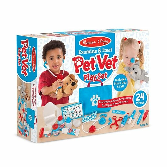 Your vet-in-training will get in hours of practice with this hands-on Melissa & Doug examine & treat pet vet set.