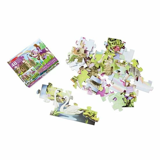 Create a stunning scene that includes a princess on her unicorn, a castle, swans, butterflies and more with this Melissa & Doug Fairytale Castle floor puzzle.