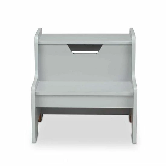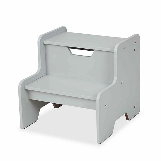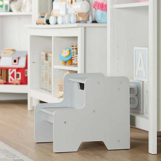 - Sturdy wooden two-step step stool for kids in gray to fit any home décor (also available in white, natural, and espresso)