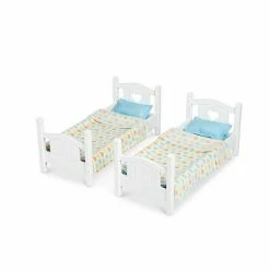 - Made to fit dolls up to 18 inches tall, these two durable white beds with a wipe-clean surface can be used side by side or stacked to stand approximately 17 inches tall.