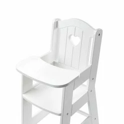 - Made to fit dolls up to 20 inches tall, this durable white chair stands approximately 18 inches tall and features a removable tray and wipe-clean surface