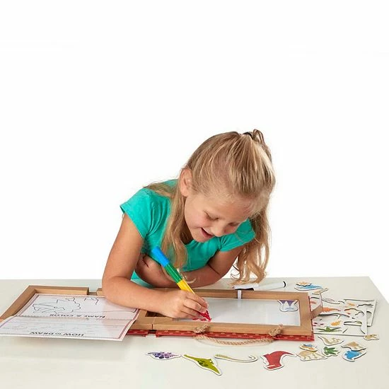 - This reusable drawing and magnet activity kit includes a take-along case with rope handles to conveniently store and carry 41 magnets, 5 dry-erase markers with an eraser, a built-in magnetic dry erase board, and a 13-page spiral-bound dry-erase activity book.