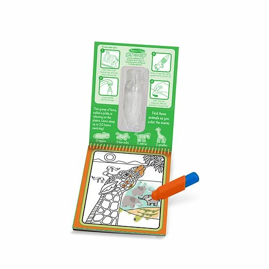 - CHUNKY-SIZED PEN: These Melissa & Doug no-mess coloring books each come with a chunky-sized water pen that allows easy filling and is designed for smaller hands to easily grasp. The compact, spiral-bound format is great for travel.