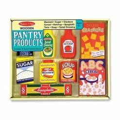 A variety of wooden pantry items make this Melissa & Doug Pantry Products set essential for kitchen role play.
