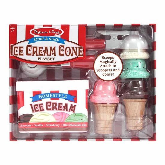 This Melissa & Doug Scoop & Stack ice cream cone playset features four flavors and two cones for hours of make-believe fun.