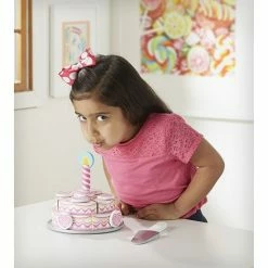 This Melissa & Doug Triple-Layer Party Cake makes an amazing addition to her pretend parties with pretty mix-and-match decorations.