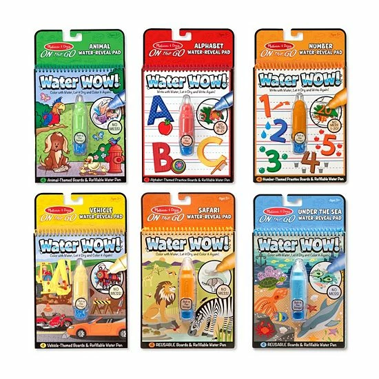 Reveal hidden pictures using just water and this Melissa & Doug Water Wow! Water Reveal Pad Bundle.