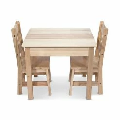 With a natural finish and classic look, this Melissa & Doug table and chairs set is just right for kids to work on puzzles, arts and crafts, and more.